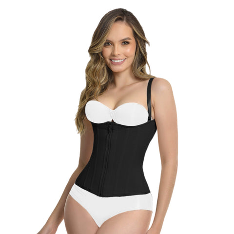 ✨ Semi chaleco de alta compresión. ✨ 9Varillas flexibles mantiene la espalda recta sin perder flexibilidad. ✨ Talle largo. ✨ Cierre frontal para mayor ajuste. ✨ Doble refuerzo en vientre para mayor control. ✨ Te ayuda a dar mayor control a tu cintura, a marcar tu vientre más plano.